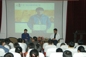 大众工业学校学生职业生涯导航活动系列之一——“共享成长·与榜样面对面”活动于06年12月20日下午在阶梯教室举行。通过对我校优秀毕业生、现留校任教的王文强老师成长成才经历进行了访谈。王老师在学生时代是校学生会主席、团委副书记,尽管工作繁忙但在学习上尤其是技能上更是出类拔萃,在毕业前,他就获得了数控高级证书,他还代表上海参加了学生组的全国技能大赛并获得了好成绩。工作一年后就是技师,今年他又代表上海参加了职工组的全国技能大赛。如此出色的成绩让在坐的学生会干部惊叹不已,更是感到由衷地佩服。