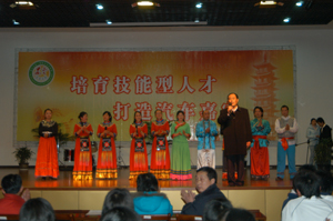 下午全体教师艺术团老师在多媒体教学中心为大众工业学校师生奉献了一台质量很高的文艺演出节目。艺术团老师们的无伴奏合唱《五月蝉虫叫的欢》、《八竣赞》让人们领略了天籁之声,市属联办幼儿园的小宝贝们给大家带来了充满着童趣的《青蛙与荷花》,大众工业学校学生自弹自唱的原创作品《诺言》、小组唱《阿拉木汗》以及民乐队的《歌声与微笑》也参与同台演出,展示出我校学生的艺术风采。高康校长、高明副校长、周超颖副书记、陈斌主任和数控教学部七百多名师生观看了演出。演出气氛热烈,师生受到了一次良好的艺术熏陶。