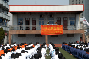 下午一时,全校三千余名师生已在大草场上集队完毕。整齐的队形、有力的步伐和响亮的口号声,这些学校半军事化管理带来的成果给丁检察官留下了深刻的印象。