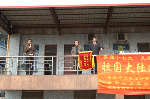 最后,在热烈的掌声中,张思义同志代表区教育局向丁树达检察官赠送了一面题为“联手关爱下一代,无私奉献建和谐”的锦旗,表达我们对他的敬意和感激。