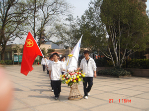 3月27日,值此清明节到来之际,华体会体育06级学生干部在校党总支、团委组织带领下,来到了上海龙华烈士陵园祭扫烈士墓。同学们在庄严而隆重的仪式中向烈士墓敬献了花篮,并三鞠躬。随后,在工作人员的讲解、引导下,同学们参观了烈士纪念馆。纪念馆内陈列和展出了上海地区自1840年以来为中国的独立、自由、解放和革命事业而献身的235名革命先烈、革命先驱的英雄事迹。同学们在参观后深感今天幸福、和平的生活来之不易,是先烈们抛头颅、洒热血换来的,应该倍加珍惜,更应好好学习、掌握扎实的技能,为祖国建设贡献力量。