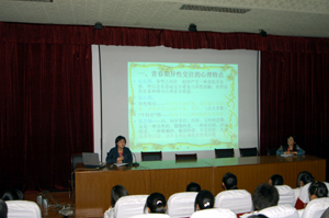 青春期是人生的黄金季节,同时也是人生的危险阶段。针对目前05级学生即将踏上实习岗位,为引导05级女生在校外实习中正确对待异性交往,积极主动又谨慎地交友,进一步增强自身的保护意识,4月27日下午第三节课在科技楼阶梯教室举办了“在青春的季节里把握自我”05级女生青春期专题讲座,由区教师进修学院德研室谭海燕老师主讲。