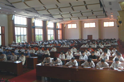5月8日,在多媒体教学中心里座无虚席,学生理论学习的主阵地——党校,今天在这里举行第二讲。由校党总支书记、校长高康主讲,主题是“为人生成长奠定基础”。高书记从“人活着要有理想”、“人不同时期人生目标各不相同,如何来实现目标”以及“作为一名学生干部如何走好人生道路上的关键几步”等方面深入浅出地向学员们一一阐述。同学们被高书记精彩的讲话深深吸引,认真地记着笔记。