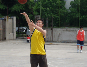 五月一日上午,由高明副校长领队,练子飞、杨健、秦爱军、张利华、陈琼毅五名男教工组成的大众工业学校代表队,精神饱满、信心十足的参加了嘉定区第一届“迎奥运、庆五一”三人制篮球比赛。