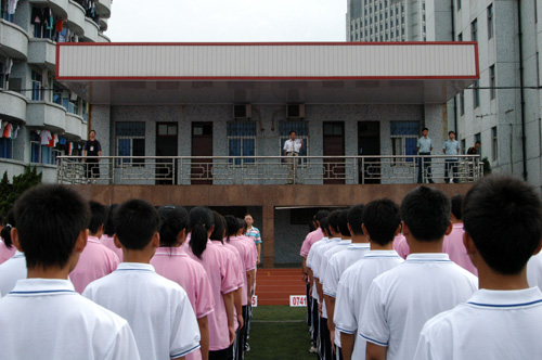 在九月金色的秋风中,大众工业学校五千多名师生在大操场上举行了新学年第一次升旗仪式。在雄壮的国歌里,在全体师生庄严的注目礼中,五星红旗冉冉升起,也托举起新学年的希望。