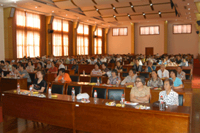 9月7日上午,大众工业学校数百名退休教职工共聚多媒体教学中心,庆祝第23届教师节。