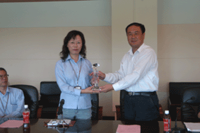 高康校长向严秋瑾书记赠送了校企合作纪念杯。仪式结束后,全体人员参观了天灵厂生产流水线。
