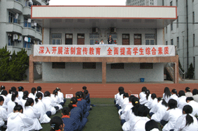 为进一步贯彻落实《中共中央国务院关于进一步加强和改进未成年人思想道德建设的若干意见》精神,切实加强中小学生的法制教育,预防未成年人违法犯罪,保障青少年人的健康成长,10月24日,学校邀请嘉定区检察院未成年人检察科朱天晓科长来校为全校学生作了一场精彩生动的法制报告。