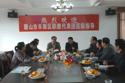 11月12日上午,由唐山市丰南区教育局副局长刘天悦率领的唐山丰南职教考察团一行八人来我校进行交流访问。高康校长对唐山市职教同行的到来表示热烈欢迎,并陪同客人们参观了学校数控、机电、电气等开放式实训中心。唐山市的校长们一边参观,一边详细地了解了学生的专业实训情况。校长们感叹一所中专学校有如此完善而现代化的实训基地确实是非常少见的。他们还饶有兴趣地观看了学校的升旗仪式。
