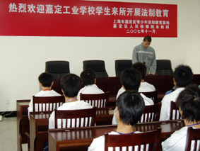 为了加强对青少年的思想教育,提高学生遵纪守法意识,预防和减少学生违法犯罪,在学校组织下,11月14日下午由学生处领导带领,四十余名学生在嘉定区看守所上了一堂别开生面的法制教育课。