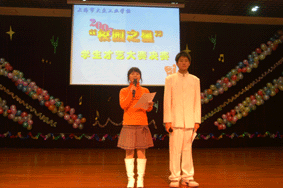才艺决赛由学生会的严扬和高韵诗两位同学主持,欢乐和温馨的氛围中,比赛在周超颖书记热情洋溢的开幕词后正式开始……