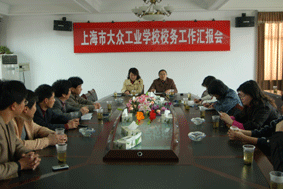 梁桦副校长首先汇报了学校开学以来文明单位创建、课改特色实验学校创建、教学法评优、全国技能比赛上海选拔赛等重大工作事项。随后重点汇报了学校2008年招生工作和毕业生就业推荐的情况,招生人数、招生专业、招生政策全部公开,并剖析了05级和06级毕业生实习就业推荐的成绩与缺点。