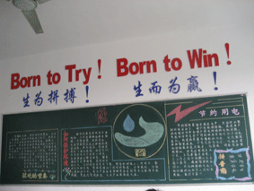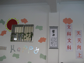 秉承大众的校训:“学做人、学做事”,我们许多的班级改进了自己的班训,锦上添花。例如0693班铭刻在墙上的誓言:“团结、勤奋、和谐”,高复5班的英语班训:“Born to try,Born to win(生为拼搏,生而为赢)”在教室后方闪耀异彩,特别是高复4班由班委“李芸婷”、“王燕”亲手设计的班徽,更是感受到了学生们主人翁意识的匠心独运。
