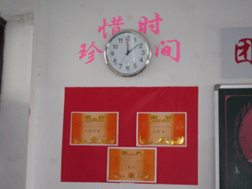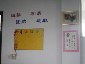 获奖的教室,最让人印象深刻的是到处渗透的浓浓专业气息。例如06同网机电催人奋进的对联“同网求知思前途,同往求技谋出路”,0671班的“我爱我班”的展板,还有“国商新干线”、“机电新视窗”等口号响亮的标语,让人时刻感受到不同的教学部和班级文化。