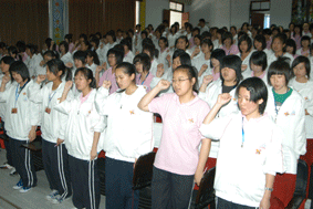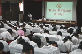 今年“5﹒8”是第61个世界红十字纪念日,在学校各级领导的关心支持下,我校开展了系列纪念活动。包括横幅、黑板报、电子屏幕等方式的宣传活动;办学部有关班级的志愿者服务;以文科办学部为重点、0751、077C1、077C2等班级共同参与的红十字会员宣誓仪式、“与奥运同行”知识竞赛以及观看急救录象片等活动,旨在进一步宏扬“人道、博爱、奉献”的红十字精神。