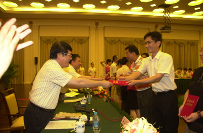 市教委薛明扬主任宣读了获奖学生及其指导教师、学校的表彰名单。市领导向我校获奖选手和指导教师颁发了荣誉证书。最后上海市副市长沈晓明发表了热情洋溢的讲话。