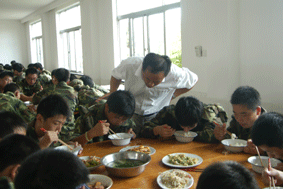 2008年8月9日上午,大众工业学校领导班子一行6人在高康校长的带领下,来到浏河营地、太仓基地看望冒着烈日坚持军训的同学们。