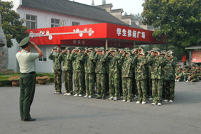 训练场上,学生们统一穿着迷彩服,投入了严格的训练。他们身处毫无遮掩的训练场,头顶炎炎烈日,耳听声声号令,不断重复着各种简单而枯燥的步伐和动作。有的同学顶不住烈日的炙烤,中暑晕倒了;有的同学先天哮喘坚持参加军训,有的吐了一次又一次,毫无怨言;有的班级上演感人一幕:一杯水从第一个传到了最后一个……,同学们一扫往日的娇气,挺过了高温的考验和高强度的训练。在教官们的指导下,同学们学习了简单的基本军姿训练,立正,稍息,向左转,向右转,正步走等,又学习了军歌和参加了国防知识讲座。对于新生来说,是苦,是累,但他们没有退缩,他们坦然面对了血与汗的洗礼,留下的将是他们一生受之不尽的自信、坚强和毅力;留下的将是中专生活难以忘怀的经历和记忆。通过军训,同学们不仅学到基本的国防知识,还可学习到人民解放军艰苦奋斗、吃苦耐劳,爱国奉献、勇于牺牲,勇敢顽强、坚忍不拔的优良传统。这些都十分有利于同学们在今后的学习和生活中培养爱国主义、集体主义精神;有利于同学们增强国防观念;有利于磨练同学们的意志品质,培养艰苦奋斗、吃苦耐劳的作风,增强战胜困难的信心和勇气;有利于同学们组织性、纪律性的提高和身体素质的增强,从而为将来建设祖国、保卫祖国打下坚实的基础。