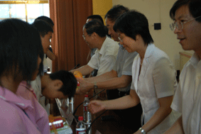 在慰问座谈会上,领导与同学们们亲切交流。来自数控教学部的应鹏同学、机电教学部的范玲同学、计算机教学部的梁显波同学和电气教学部的何棋同学代表都江堰学生谈了来上海一周的感受。数控教学部管坤主任和电气教学部周惠莉主任代表教师发言。