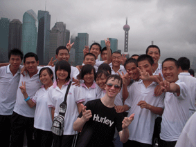 一早,当同学们乘坐大巴来到无与伦比的上海外滩,映入大家眼帘的是鳞次栉比,耸立着的52幢各种风情的大厦。有欧式建筑风格的楼顶,有又窄又长,雕满花纹的门窗。最具有代表性的建筑物是外滩的海关钟楼,显得很气派,很高雅,每当报时的时候声音是那样的混厚而响亮……被誉为”万国建筑博览群”的外滩让同学们看得兴奋不已。