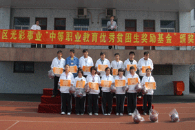 第一批“光彩事业”奖学金共计发放奖励金额5万元。受资助的65名学生是经过本人申请、班级评定、教学部初审、学校复核和区教育局批准等手续,评选出一等奖10名,奖学金1500元;二等奖15名,奖学金1000元,三等奖40名,奖学金500元。