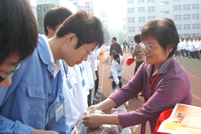 大众工业学校数控教学部079C1班的郭晓同学是本次一等奖学金的获得者。他代表大众工业学校第一批受资助学生在“光彩事业”奖学金签约仪式上发了言。他在发言中非常感谢党和政府对家庭贫困学生的关心,感谢区光彩事业促进会的领导对贫困学生的资助,表示一定要好好学习,以优异的成绩来报答党、政府和社会各届的关怀。