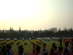“迎世博—上海200万学生阳光体育冬季长跑活动”起跑仪式于2008年10月27日下午在嘉定区安亭中学举行,我校由数控教学部4个班级共100名男生表演的团体操《中国鼓》在起跑仪式上作了表演,同学们整齐地挥动着手里蓝色的丝带,配合着其他学校的鼓声把起跑仪式表演推向高潮。表演结束后,同学们站在原地,聆听了领导的讲话。至始至终,我们的同学表现出了极强的组织性纪律性,笔直地站在原地,没有交头接耳,没有摇摇晃晃,给在场的来宾留下了很好的印象。在本次活动中,我校礼仪队的6名同学承担了引导任务。