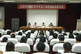 会议在庄严的国歌声中开始,大会首先审议通过了主席团人员名单。校工会第二届委员会主席朱凤芬做了第二届工会工作报告。报告围绕加强工会自身建设,健全教代会制度,参与学校民主管理,切实维护教职工利益,发挥工会在师德教育和校园文化建设作用等内容,全面回顾了校第二届工会五年来的工作。代表们审议并一致通过了报告。随后代表们又审议通过了高明副校长所做的校第三届教职工代表大会筹备工作报告。