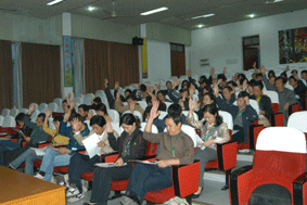 高康书记兼校长最后发表了热情洋溢的讲话。他指出:校第三届一次教代会的召开,是全校教职工政治生活的一件大事。这次会议,是迎接改革开放30周年的重要时机召开的,对于我校全面贯彻党的十七大精神,在新的历史起点上开创工会工作新局面,团结、动员全校广大教职工实践科学发展观,走内涵发展道路,建设品牌学校的工作具有十分重要的意义。他希望大家认真学习胡锦涛同志在与中国工会十五大代表座谈会上发表的重要讲话,并与学校的实际工作相结合,坚持服务于学校工作大局,创造性地开展工作,充分发挥广大教职工在推动学校建设和社会进步中的主力军作用,切实表达和维护职工群众的合法权益,推动工会工作不断创新发展,在促进社会和谐中发挥重要作用。