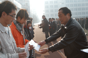 梁桦副校长的发言结束后,美卓中国公司总经理尤卡先生用中文向全校师生们问好,并简要介绍了美卓公司的概况以及公司在大众工业学校设立奖学金的目的,同时希望校企双方今后能进一步拓展和加深校企合作。尤卡先生言简意赅的讲话博得了全体师生热烈的掌声。