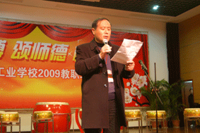 校党总支书记、校长高康发表了激情洋溢的新年贺词。高校长首先代表学校党政领导,向辛勤工作的全体教职员工表示亲切的慰问,向积极筹备这台节目的演职人员表示衷心的感谢,并预祝演出获得圆满成功。他说:过去的2008年学校发展取得了累累硕果,不论是在教学改革、在学生素质教育、基础设施建设和校园文化建设方面都取得了重大的突破。这些成绩的取得,无不凝聚着全体教职工辛勤工作、无私奉献的精神。今天,让我们暂时放下繁重的工作,放松心情,舒心地笑一次,好好地享受一下这工作之外的乐趣。并借此机会增进部门间的了解,加深同志间的感情,凝聚成一个团结的集体、一个健康的团队、一支奋进的队伍,更好地为学校发展做出新贡献。发表完贺词后,高康校长以清唱一曲《大海航行靠舵手》打开了2009文艺汇演的序幕。