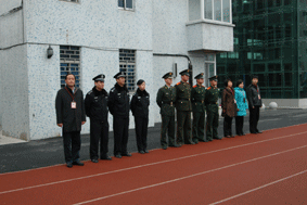 在升旗仪式上,菊园派出所汪所长就嘉定公安局驻大众工业学校警务室的成立发表了祝贺讲话。