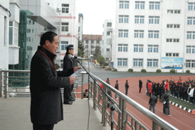 8:45分,全校师生齐聚大操场举行新学期第一次升旗仪式。在乍暖还寒的早春时节,同学们在入场式以整齐的队伍、响亮的口号展现了新学期饱满的精神状态。高康校长发表了新学期致词。他希望老师们在新学期里全心热爱学生,加强师德修养,贴近学生搞教学,做一个“上课学生爱听,下课学生爱戴”的老师。致力于学生科学素养和人文情怀的培养,树民族精神之魂,立可持续发展之根,育有竞争能力之才。他勉励同学们在新学期里要树立远大的理想,规划好自己的人生,刻苦学习,强化技能训练,不断增强在经济危机下的就业竞争意识和竞争能力。对于即将到来的第三届“星光计划”大赛,他要求选手们不仅要取得竞赛成绩的丰收,更要展现出师生们昂扬奋发的精神状态、无私奉献的志愿精神、严密高效的管理体系和底蕴丰厚的校园文化。