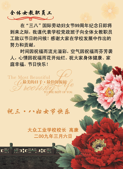 祝全体女职工“三八”节快乐