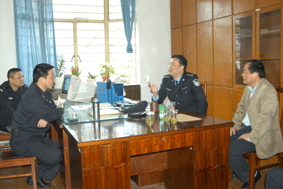 4月14日上午,嘉定区公安分局孟民副局长、嘉定公安分局治安支队陈军副支队长、菊园警署唐剑锋所长、汪建钢副所长一行六人来到大众工业学校指导工作,孟副局长在高康校长、陆浩勤副校长的陪同下,察看了实训中心、学生寝室等场所,最后来到了新成立的学校警务室,看望了嘉定公安分局派驻到学校警务室工作的法制副校长、警官沈燕忠同志。孟副局长说,华体会体育警务室是嘉定公安分局大走访后为加强警校联系开展的一个试点,作为全市的试点工作,学校警务室得到了公安系统、学校及社会各界高度的关注,因此,此项工作意义深远,对到校开展工作的沈燕忠同志来说,责任重大。孟副局长对学校警务室的工作提出如下的要求: