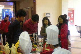 在参观的过程中我们可以看到,随着近几年职业教育的发展,很多参观者、游客和家长都把目光转向职业教育。去年刚刚组建的上海现代护理职业教育集团、交通物流职业教育集团以及信息技术、南湖等43所国家级、市级重点中等职业教育机构参展。各职业教育展位展示区通过视频、展板、发放资料等形式,生动而立体地展示了自己学校近年来的办学成果、招生情况和政策,有不少市民一边翻阅、领取宣传资料,一边询问招生章程。职业教育展示区中有数个职业学校的学生进行食雕比赛,以丰富多样的形式吸引了观众的关注,引得游客纷纷停下脚步观赏、拍照留念。此外,本届教博会还精心设计,特别推出了15场职校学生综合才艺发布会,为学校展现多姿多彩的校园文化、社团活动以及学生专业技能等搭建平台,增强教博会与市民的互动环节。