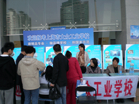 在我校展位前,现场人头涌动,家长们有序询问着学校的教学状况,专业设置,毕业去向。很多家长都是慕名而来,虽然学校地处嘉定,对于市区的同学显的稍远些,但多数家长依然表示对于学校的半军事化管理很有特色,放心让孩子住宿在学校。