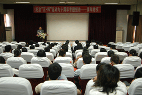 5月6日下午,在华体会体育第四教学楼阶梯教室内隆重举行纪念“五·四”运动90周年青年党校党课活动,以一堂特殊的党课来纪念“五·四”运动。校党总支书记、校长高康、党总支副书记周超颖以及学校35周岁以下全体青年教工出席本次活动,共同缅怀先烈的丰功伟绩,弘扬五四精神。