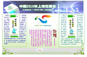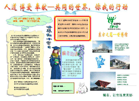 为纪念第62个“五•八”世界红十字日,大力宏扬“人道、博爱、奉献”的红十字精神,并使学生能了解世博、参与世博,营造和谐、积极的校园氛围,学生处、校团委、校红十字会日前联合举办“凝聚人道力量 同迎世博 共创和谐校园” 电脑小报展评活动,目前已收到电脑小报30余份,现将部分作品予以展示,希望各班踊跃参加,活动初定本周三截止。