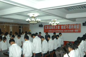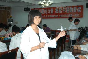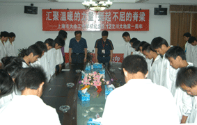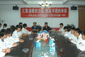 梁显波同学说“5·12是悲愤而沉痛的河流,永远流淌在我们的心里。去年的这个时节,令人寒心的灾难带走了无数乡亲们的生命;如今,灾区重建正在进行,未来充满了希望。现在我们面临着毕业实习,不论是选择在这里(上海)报答社会,还是选择回去建设家乡,都要有解决困难,面对未来的信心和勇气。我们正值青春大好年华,一定要把握今天,创造未来!”
