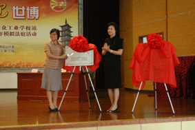 区教育局党委委员李敏主持会议,区人大内司工委主任关宇辉,区教育局党委副书记朱灵,区人民法院审判委员会委员、民一庭庭长胡飞兵,团区委书记徐磊出席会议并为嘉定区青少年法制教育工作站──华体会体育、新春学校揭牌。