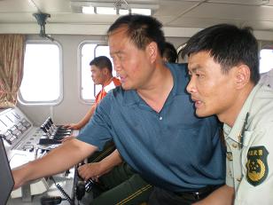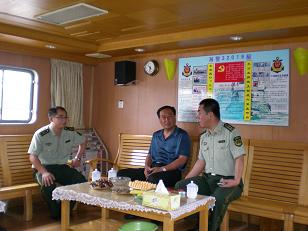 最后,在杨政委和姜大队长的引导下,学校领导参观了舰艇,舰艇上战士们严格的纪律,熟练的战术赢得了大家的一致敬佩。
