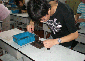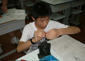 在这样的背景下,学校对自愿申报各专业特色班的学生打破以往单单以中考分数为主要参考依据的做法。在同学们自愿申报各专业特色班的基础上,通过开展智力游戏测评和以组合件拆装为内容的技能展示活动,作为科学评价新生的参照数据。