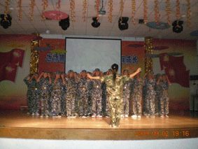 老师们的表演同样精彩,《放飞梦想》,让我们扬帆在大众工业学校。明天会更好,祝愿大家一天比一天成熟,一天比一天有精神有朝气。最后的节目,教官们动人的歌声给了我们不少惊喜。原来平时严厉的教官们也有动情的一面,在《十年》中流入出来的不仅仅是刚毅,更是柔情万分。在名歌的演唱中,教官们也给了同学们好好上了一课。在管主任期望的讲话声中,同学们迎来了军训这6天来最美好一个夜晚。