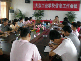 2009年9月23日中午,大众工业学校在行政楼406会议室举行了2009-2010学年第一学期校信息工作会议,各部门分管领导和信息员出席了会议。