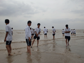 留校学生绝大部分来自内陆和山区,从未见过大海,10月7日,146名学生来到了杭州湾畔,亲眼看一下大海的壮观;赤着脚走在沙滩上,亲身体验一下大海的感觉;坐在海滩边,亲耳听一下大海的声音。三天的外出活动在欢愉的氛围中很快度过,同学们也在这三天中体会到了很多,学会了很多。