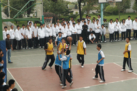 2009年10月12日中午12:25分,以“迎世博、促和谐”为契机,华体会体育09级篮球比赛正式鸣哨开赛。经过校团委的精心策划与组织,以及各教学部班主任的高度重视,第一天比赛准时、正常、有序。