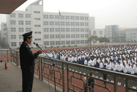 首先,在升旗仪式上,由我校法制副校长沈燕忠警官以“创建平安和谐校园”为题,为全校师生做了重要讲话。沈警官指出,消防日创建的是“生命至上,平安和谐”的理念。119这个数字使我们想起了火警电话,也使我们想起了熊熊烈火、滚滚浓烟的火灾现场,每天发生在全国各地的火灾都是一场场悲剧,那是惨不忍睹的人间地狱。在现实生活中,火灾已经成为威胁公共安全、危害人民生命财产最严重的多发性灾害事故,希望藉此消防演练活动能让师生们掌握一些基本的消防知识,更主要的是让我们大家增强消防意识,做到预防为主,远离火灾的危险。
