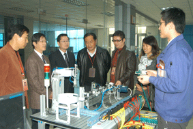 随后,领导们视察了学校实训中心。在电气实训中心,姚书记和毛局长向正在实训的同学们询问了学习进度、学习兴趣等问题。电气教学部“品牌教师”龚魏清老师向领导们汇报了学生参加全国职业院校技能大赛的备战情况,并演示了机电一体化的设备基本操作。姚书记和毛局长还察看了学校暑期新近完工的焊接实训车间。