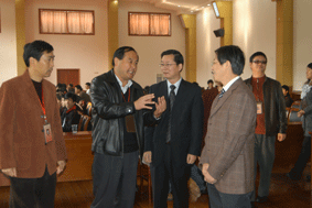 高康校长向两位领导汇报了学校的发展规划和和办学情况,就实训基地建设、“双师型”教师队伍的建设、校企合作以及公用经费的投入以及使用情况进行了说明。